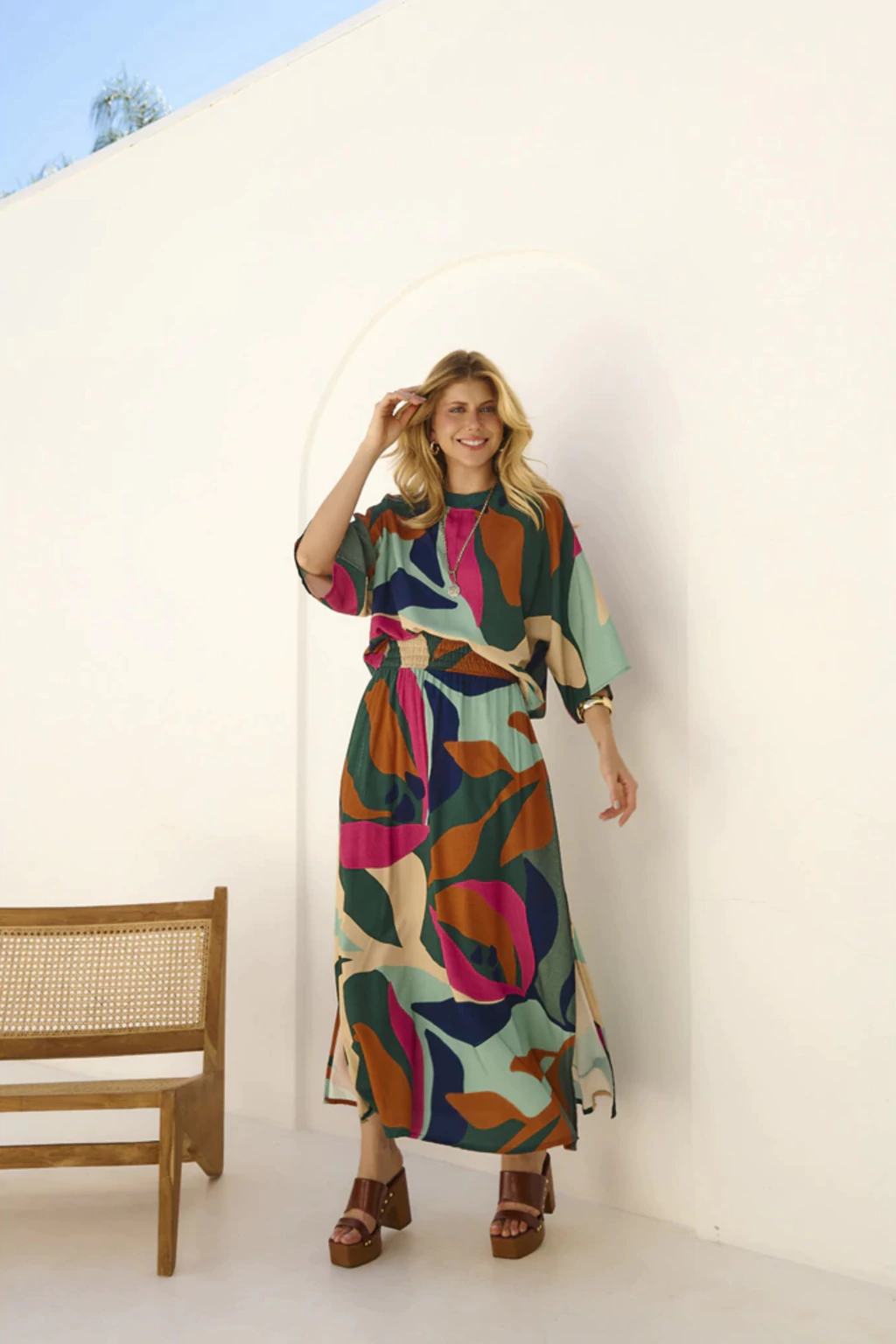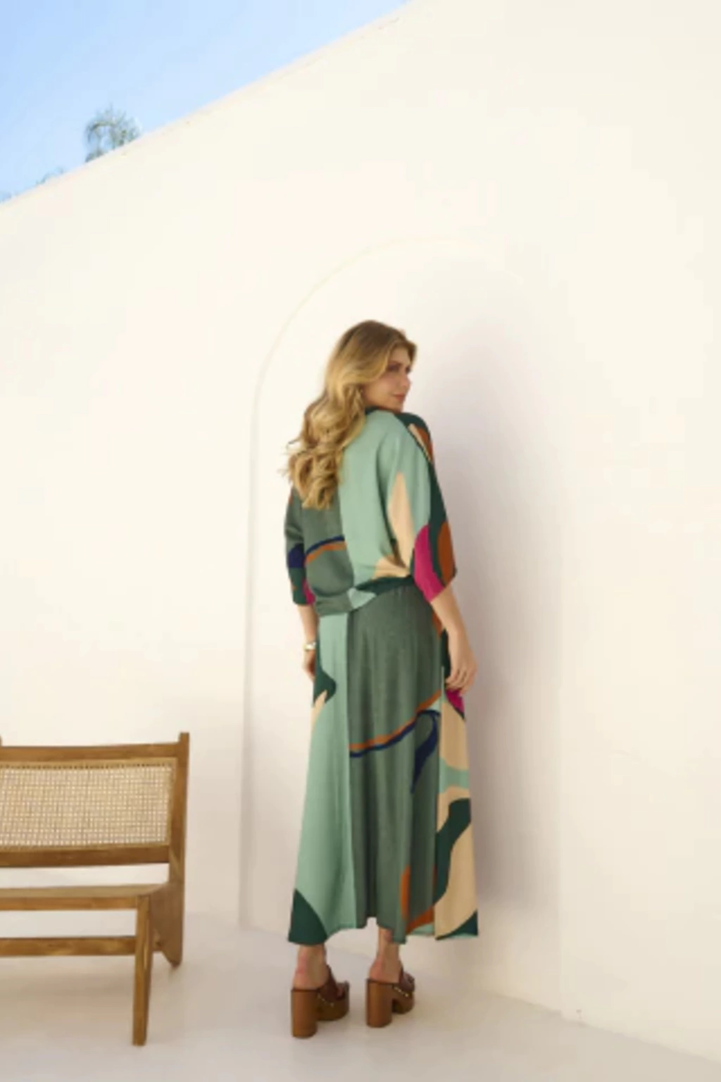 O tecido leve e delicado proporciona frescor e movimento, tornando-a uma escolha perfeita para todas as estações.