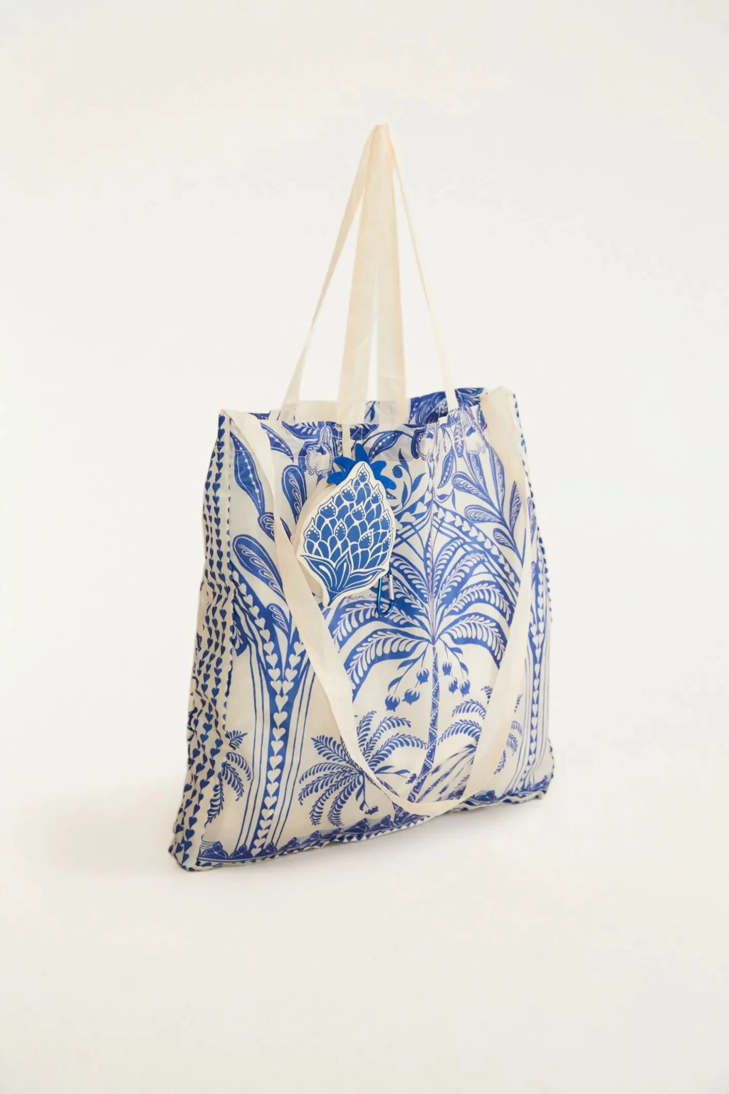 Feita em nylon estampado, é uma bolsinha dobrável e compacta, que cabe facilmente no bolso ou dentro da bolsa principal. Quando não está em uso, pode ser guardada dentro da mini bolsa em formato de elemento, que acompanha a peça e adiciona um toque lúdico e autoral. Aberta, oferece excelente espaço interno para carregar compras, itens pessoais ou o que o dia pedir, sempre com leveza e praticidade.