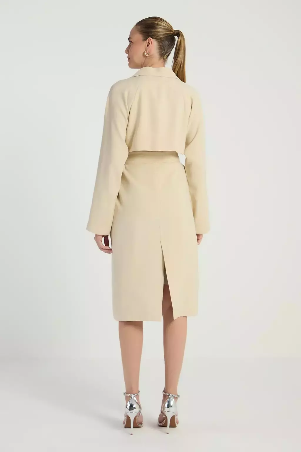 Feito com 90% viscose e 10% poliéster, o trench coat oferece conforto e leveza. Lembre-se de que a tonalidade das cores pode variar de acordo com a sua tela/monitor, garantindo que cada peça seja única.