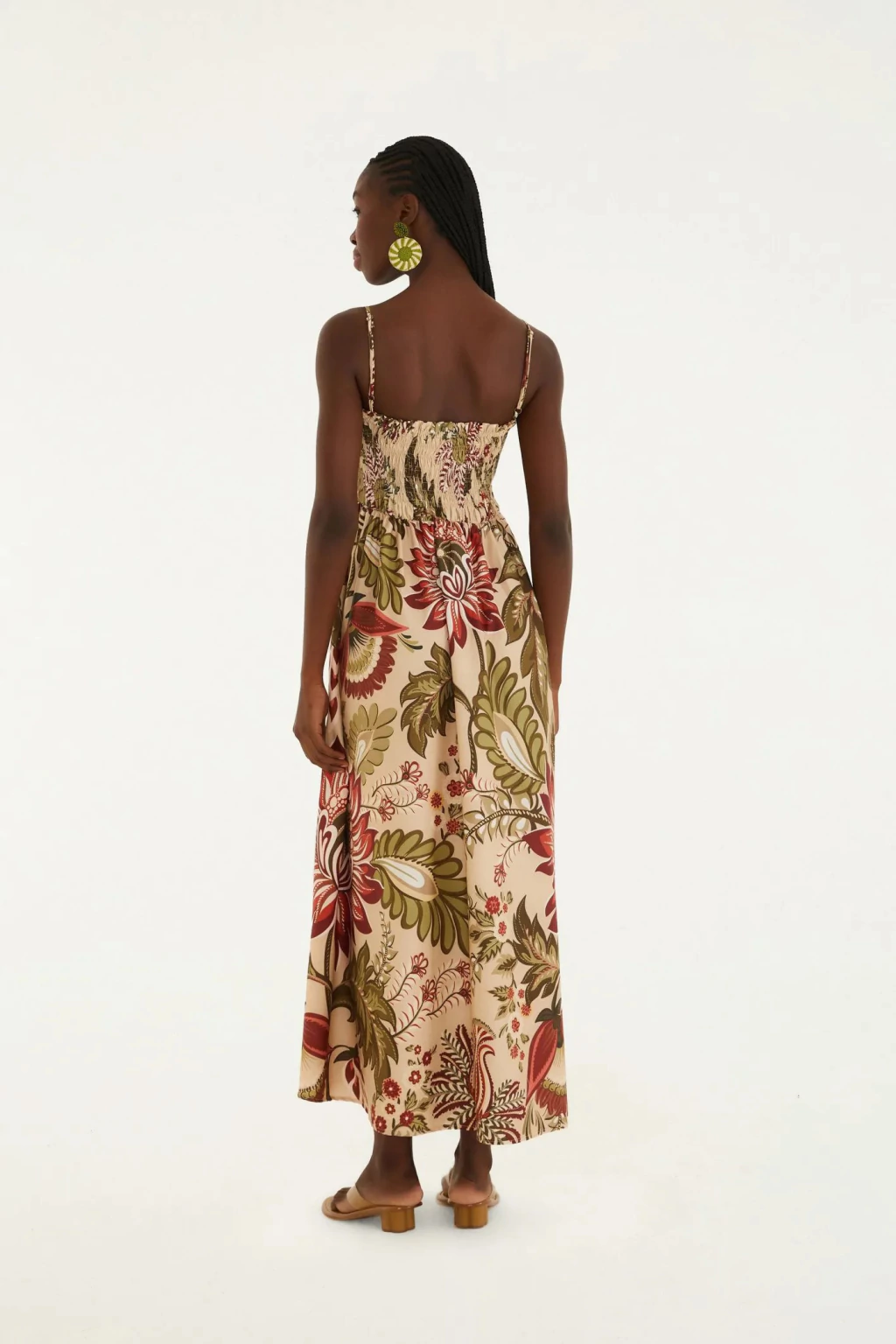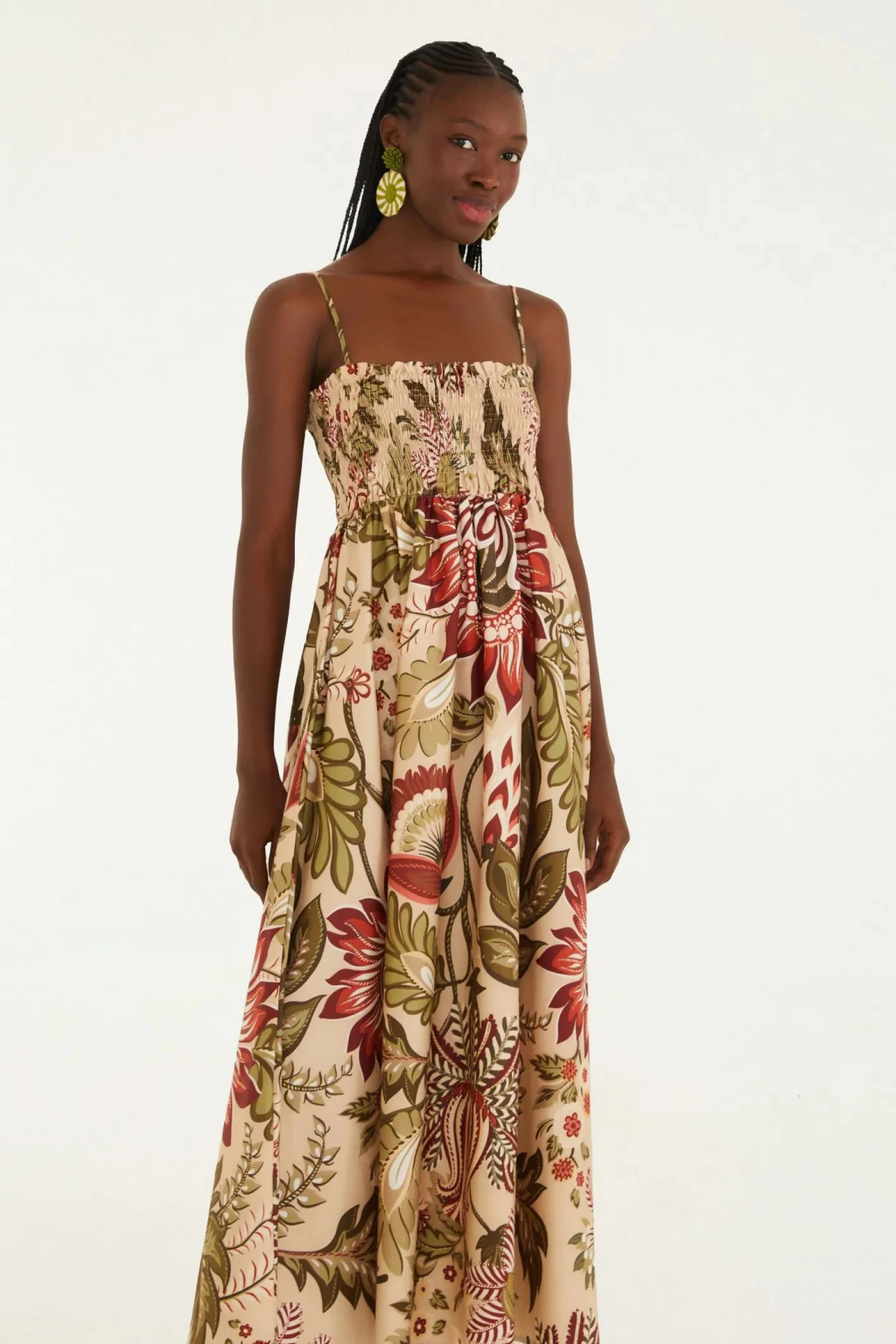 Com alças finas e um decote reto que destaca o colo, esse vestido proporciona charme indiscutível. A cintura é suavemente ajustada, permitindo um caimento fluido e leve, criando uma silhueta feminina e elegante. Ideal para ocasiões casuais ou um passeio ao ar livre, esta peça da Farm Rio traz toda a leveza e frescor do verão, combinando conforto e estilo de forma única.